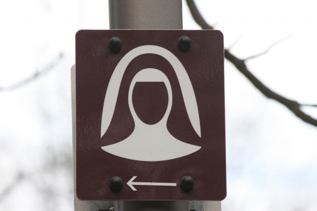 “I love this sign, don’t you? I’ve traveled to a lot of holy places, but Bingen, Germany, is the only place where the pilgrimage route is marked by a nun sign. Hildegard is their most famous resident, and they want to make it easy for pilgrims to follow in her footsteps.